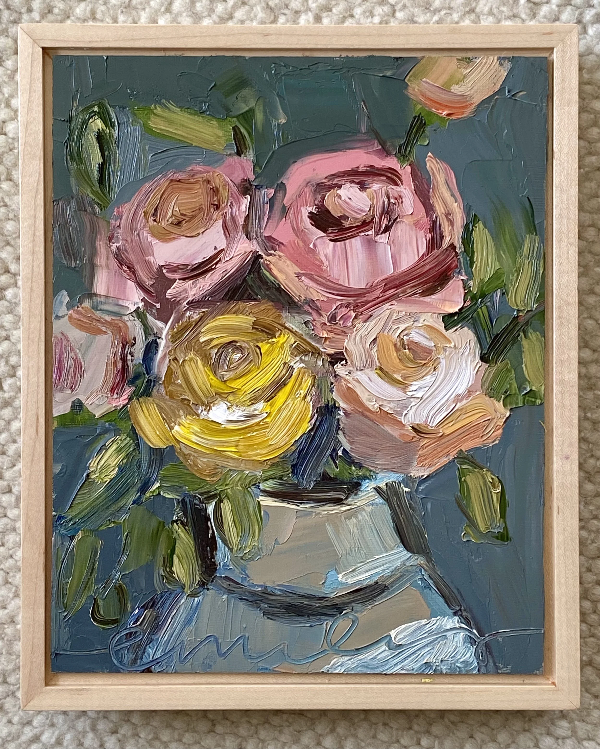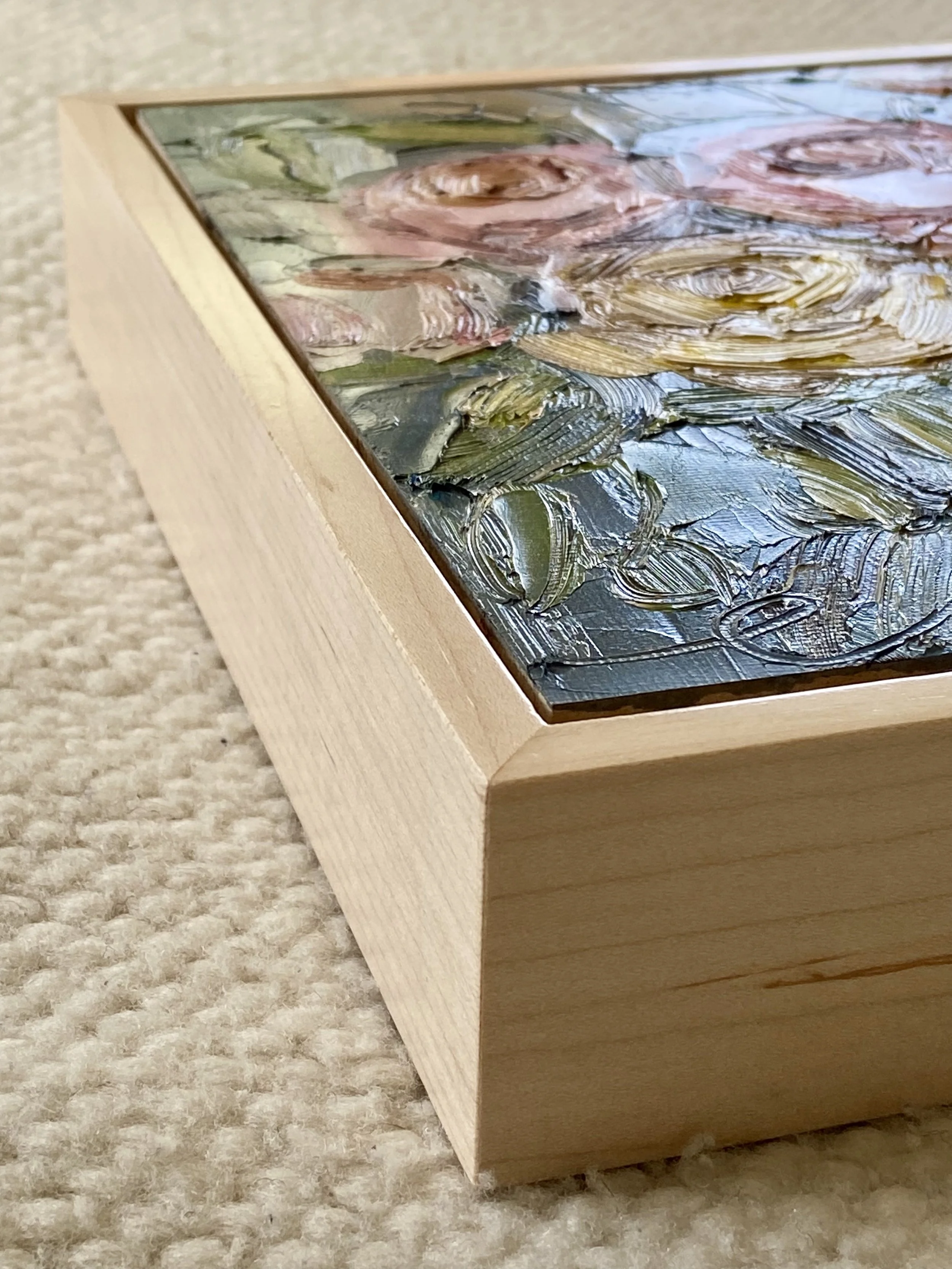 Original oil painting, 8 x 10 inches, oil on panel framed in gorgeous custom-made float frame.