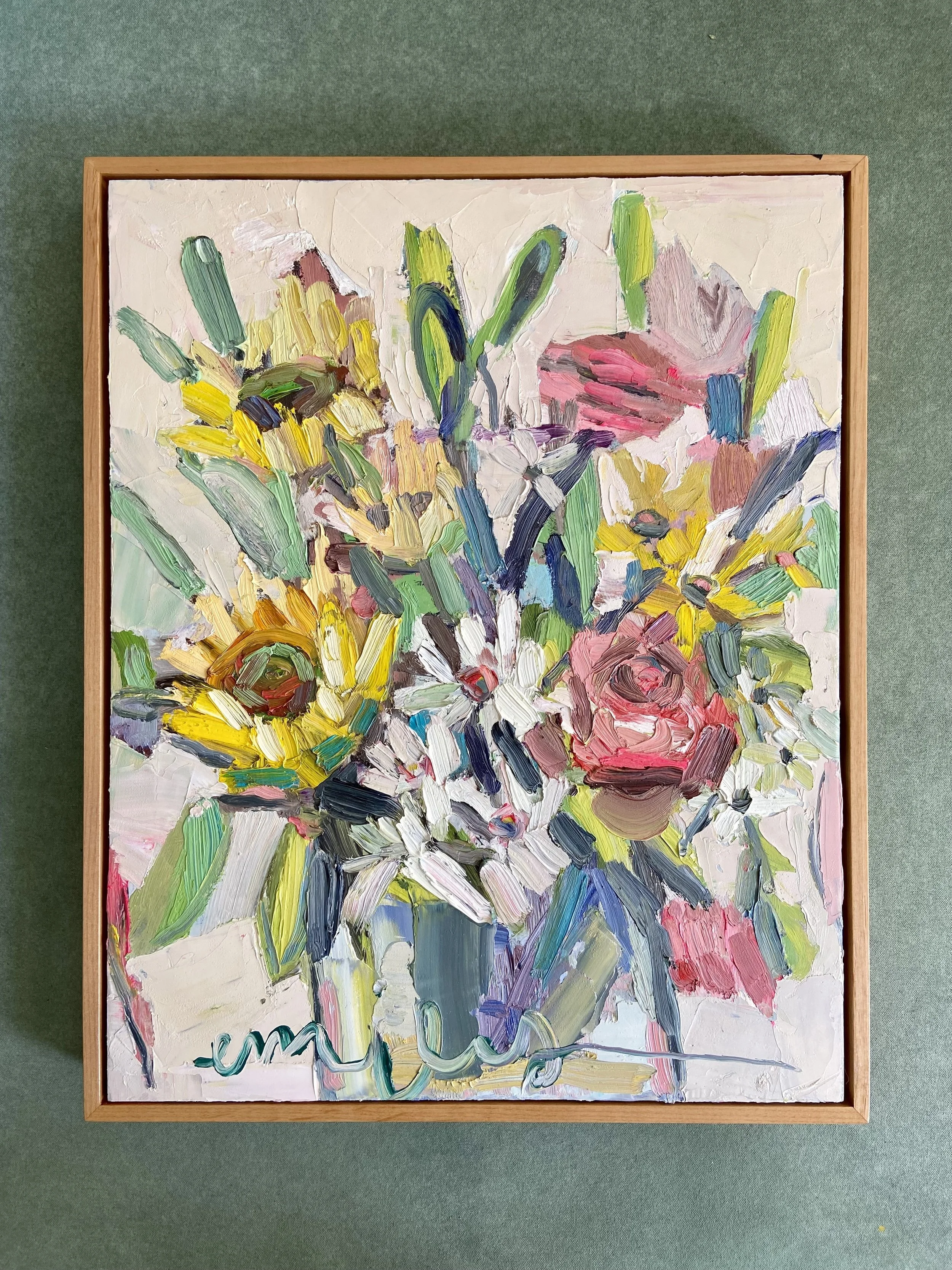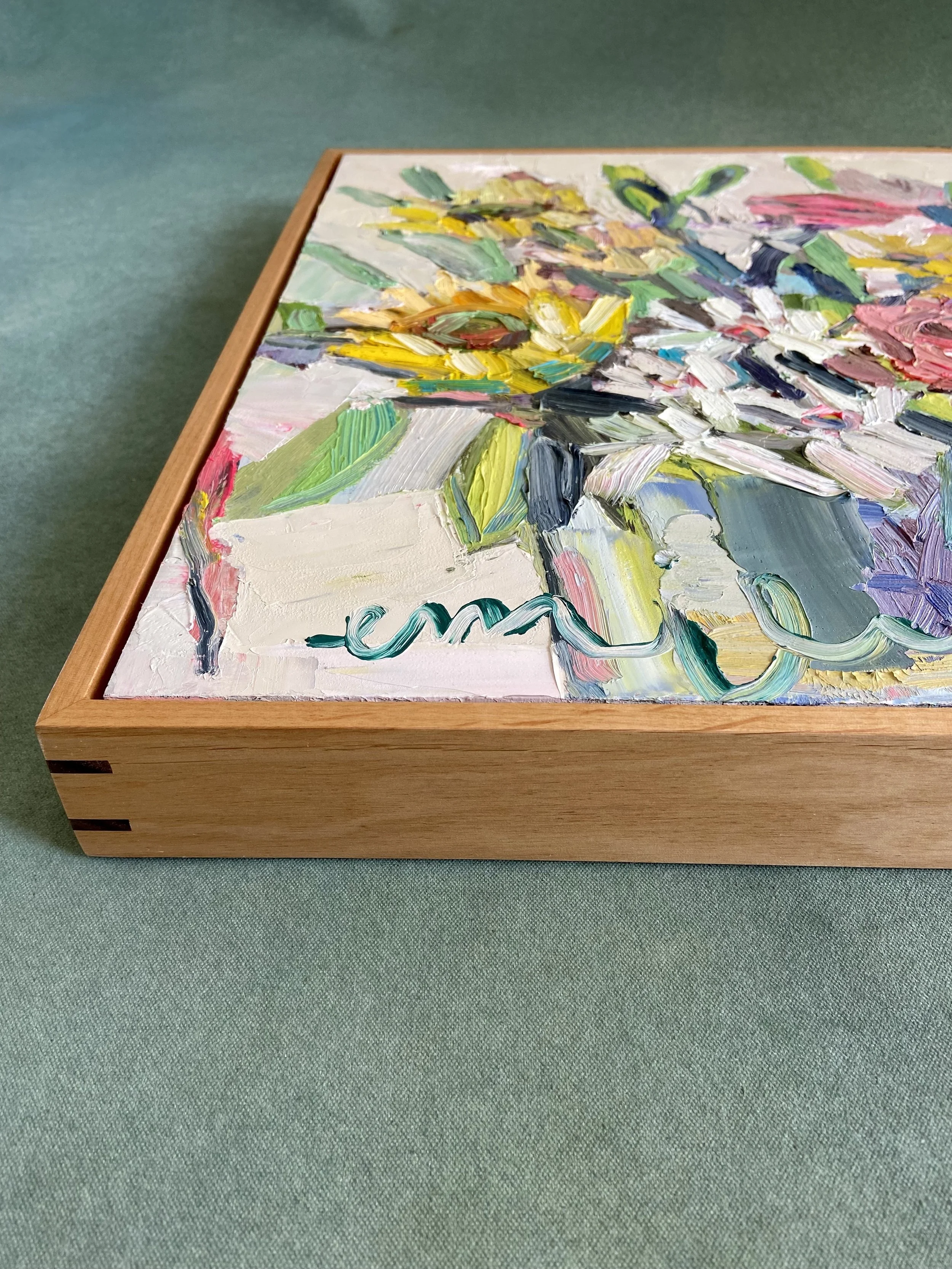 Original oil painting, 16 x 20 inches, oil on panel framed in gorgeous custom-made alder float frame.